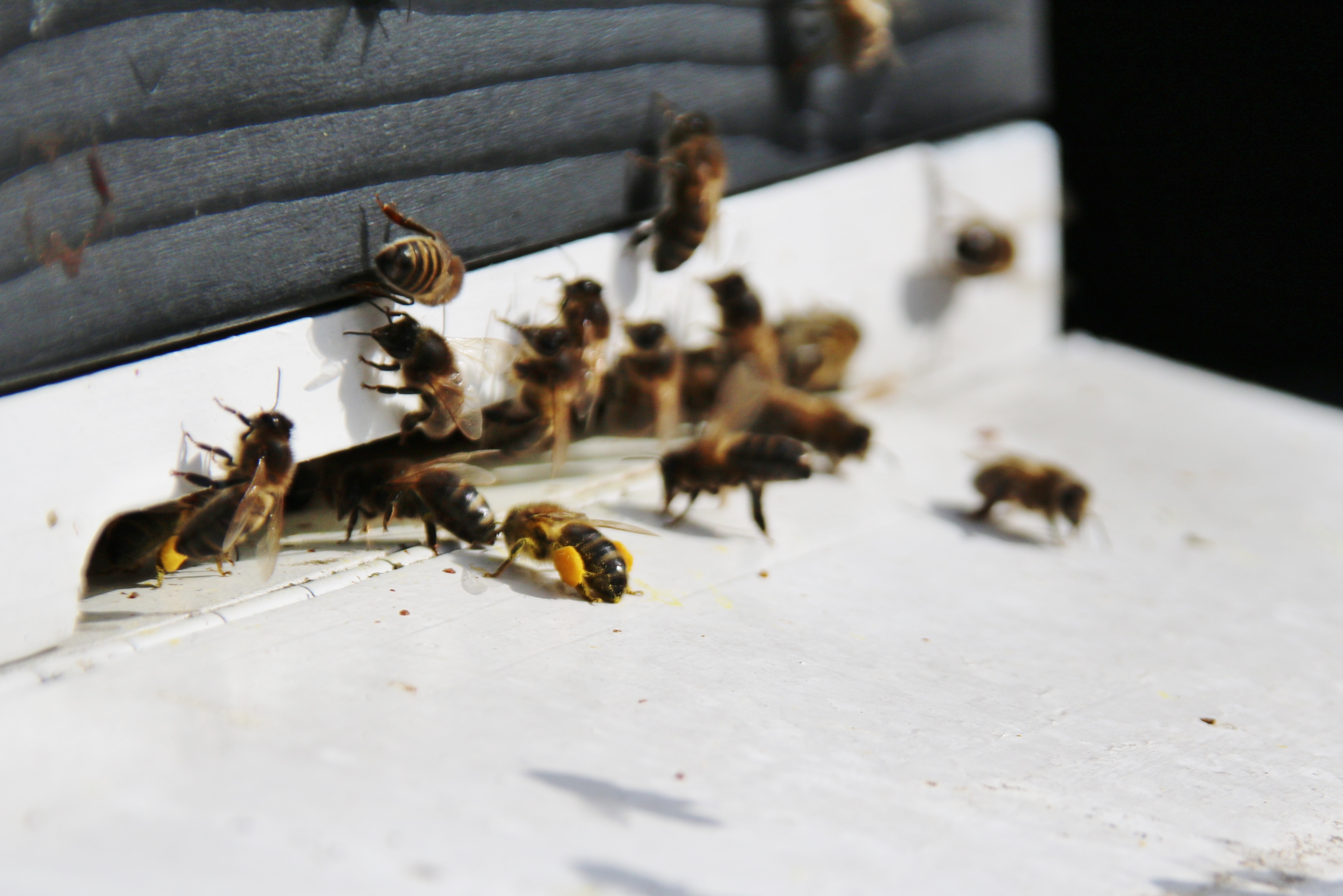 IMG_6820 Gepubliceerd op29 april 2018 om 4000 × 2669 in Voorjaarsinspectie / Volgende → De bijen zijn druk met het halen van stuifmeel, zichtbaar aan de gele klompjes